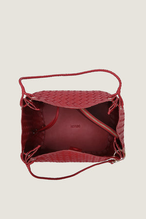 The Large Andiamo, made from full-grain sheep magazine leather, balances sophistication with functionality. Its capacious, partitioned interior boasts one zippered pocket and one open pockets for orderly storage. The adjustable cross-body strap adds versatility, making this chic bag ideal for both relaxed and formal events.