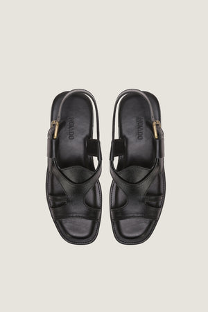 Elevate your wardrobe with the Kublai Khan Panjadar Kohati Chappal in Black. Handcrafted from 100% Genuine Cow Leather, these Kohati Chappals feature a comfortable leather insole with memory foam and a durable tyre sole. Experience tradition and sophistication in every step.