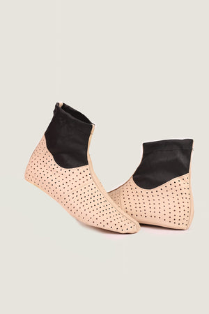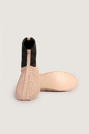 High-quality breathable leather socks (Khuffs) meticulously crafted from soft beige and black sheep leather. Providing a gentle feel, these socks are perfect for Islamic prayers and dawah travels. Engineered for longevity, they excel in cold weather and allow for wudhu during wear. Gender-neutral and fashioned from 100% soft sheep leather.
