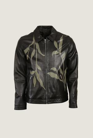Embroided Bomber Leather Jacket | Men