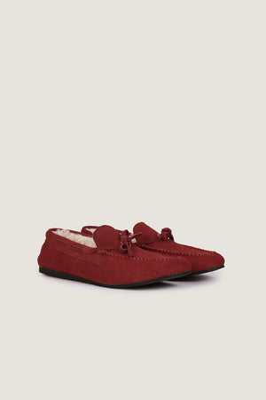 Luxurious and cozy, our Women's Fur Moccasin in Red combines refined style with all-day comfort. The upper is crafted from durable cow split leather, giving it a sophisticated edge, while the soft fur lining ensures warmth and a plush feel for your feet. The sheet sole provides added comfort, making these moccasins perfect for both lounging at home and casual outings. The deep bordo color brings a touch of elegance and flair to any outfit, making these moccasins a standout piece in your wardrobe.