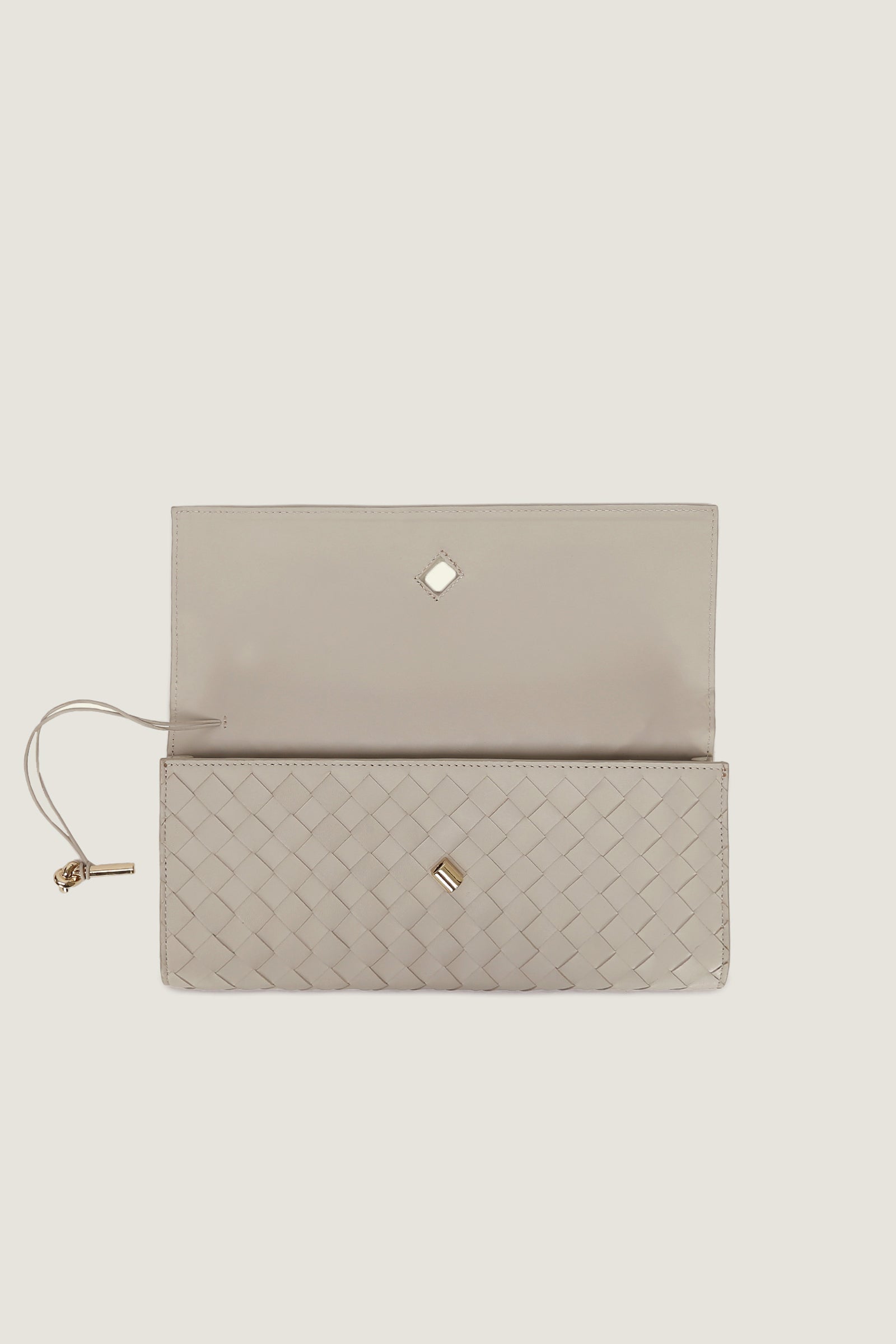 The Andiamo Clutch, made with high-quality grey Intrecciato leather, seamlessly blends style and functionality. Its refined top handle and metallic knot closure add a chic element, and the compact size includes an extra pocket for necessary items. This clutch is ideal for both formal events and everyday use, exuding a sense of sophistication and practicality.