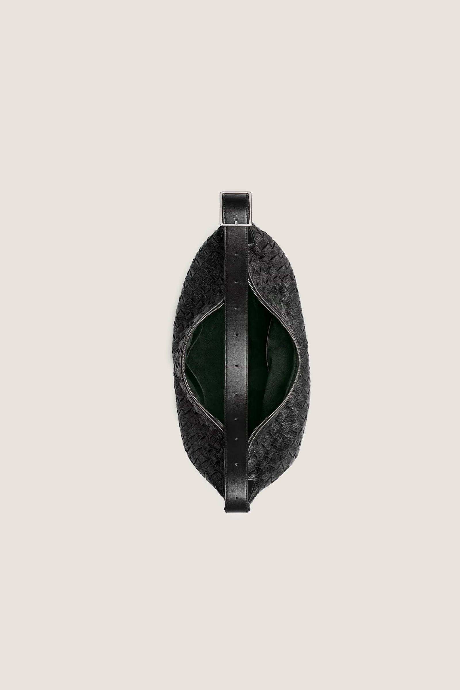 Carry elegance wherever you go with the Traveler Bag, crafted from intrecciato deer skin for a timeless, luxurious look. Designed with an adjustable strap for comfort, it features two interior open pockets, a zipped pocket, and a key hook for organized storage. The suede lining adds a touch of softness, while the secure zip closure ensures your belongings stay safe. Perfect for travel or daily use, this hobo bag combines style and functionality.